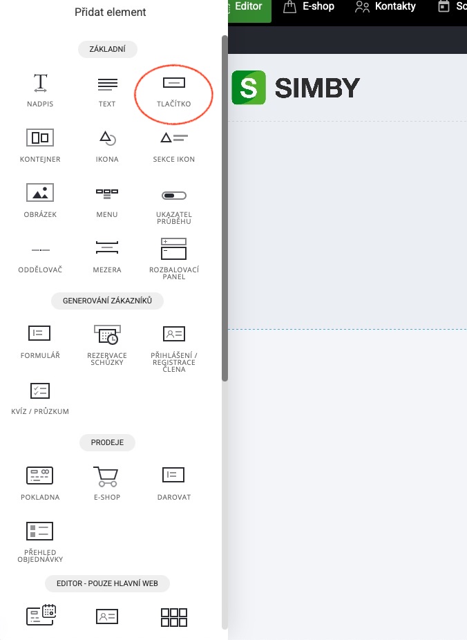 Otevřete sekci elementů, tlačítka se nacházejí v části „Základní“.