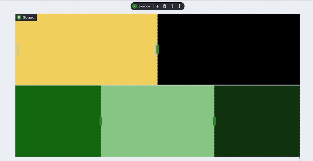 U každého bloku můžete provádět dělení a vytvářet více vodorovných sloupců a také svislých sloupců. Na obrázku níže je blok rozdělený na 3 vodorovné sloupce.