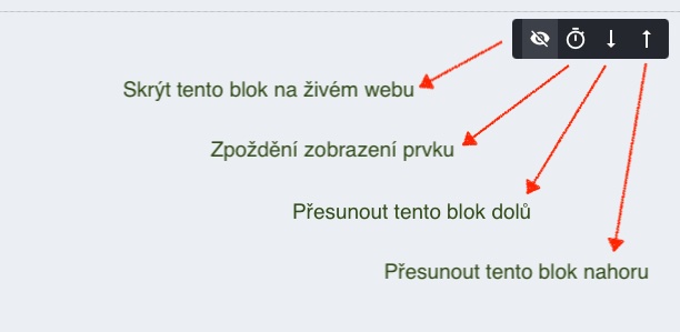 Skrytím nebo označením bloku jako návrhu se stane pro návštěvníky webu neviditelným.