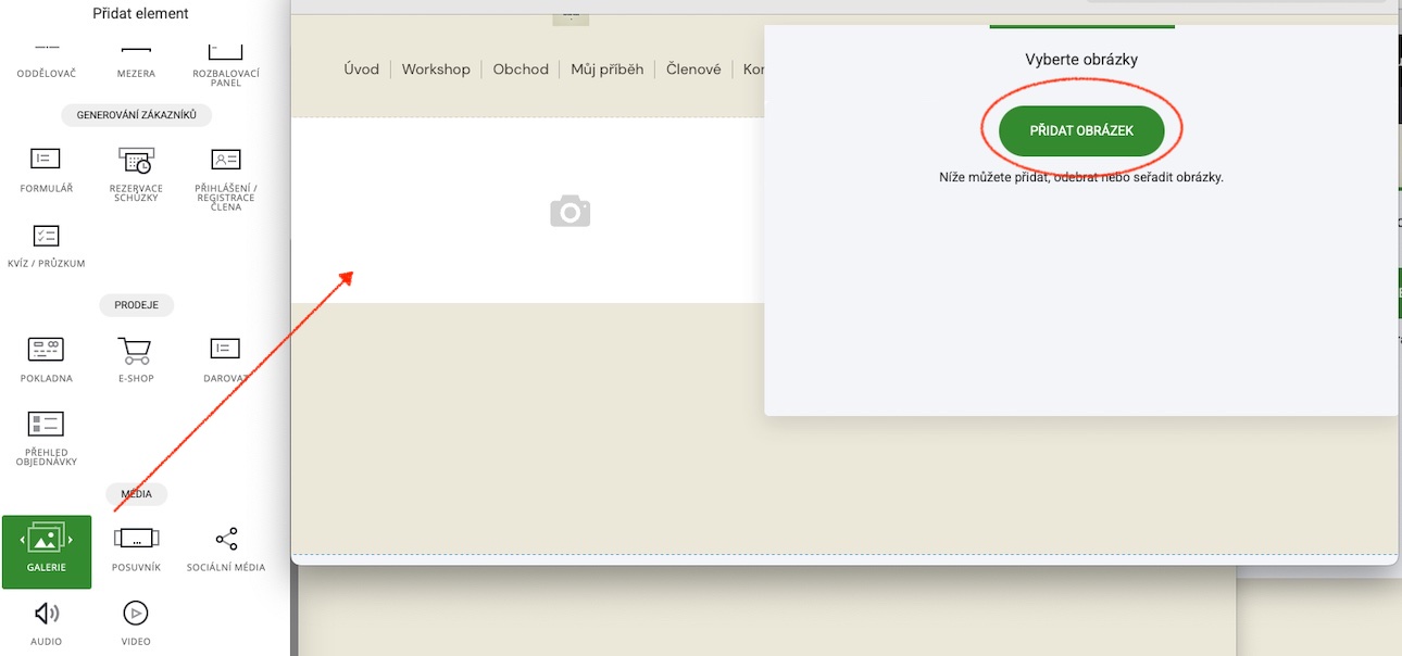 Element galerie je jednoduchý prvek pro zobrazení obrázků v mřížce nebo v interaktivním kolotoči.