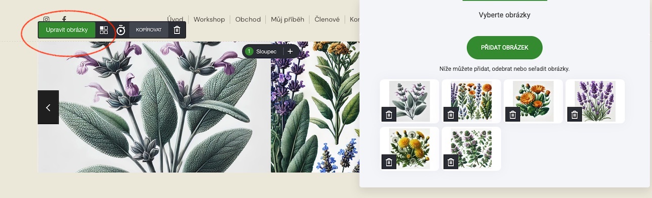 Chcete-li přidat obrázek nebo více obrázků, vyberte kartu Upravit obrázky.