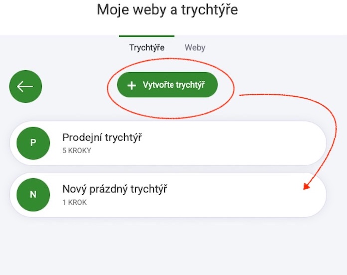 Jak je zobrazeno, váš obsah je rozdělen do dvou záložek - Trychtýř | Weby