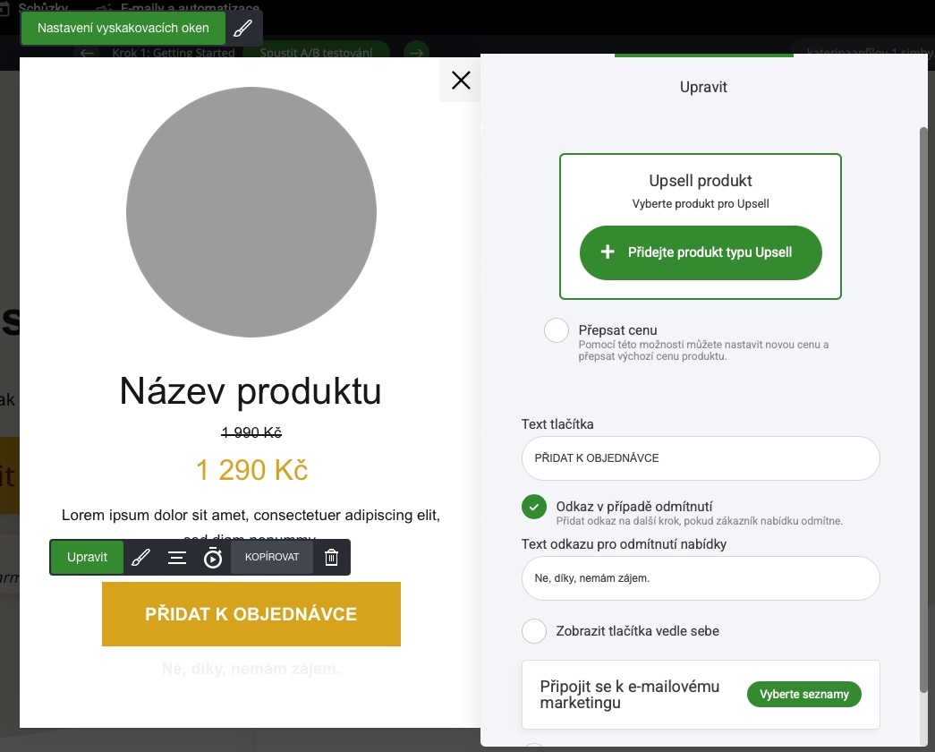 Vytvoření upsell