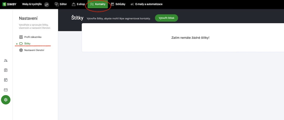 Po vytvoření nového štítku se zobrazí v seznamu štítků. Budete si také moci zobrazit všechny kontakty, které mají ve svých profilech přidaný konkrétní štítek.