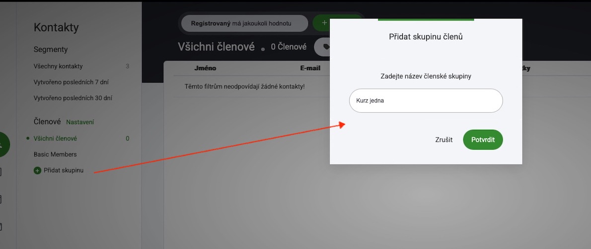 Vytvoření členské skupiny