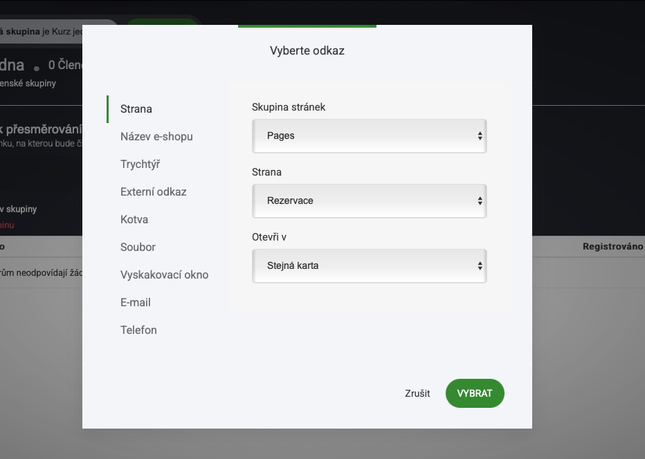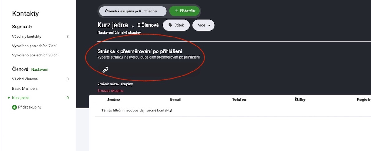 Po vytvoření skupiny je třeba v další fázi vybrat, kam budou členové přesměrováni: