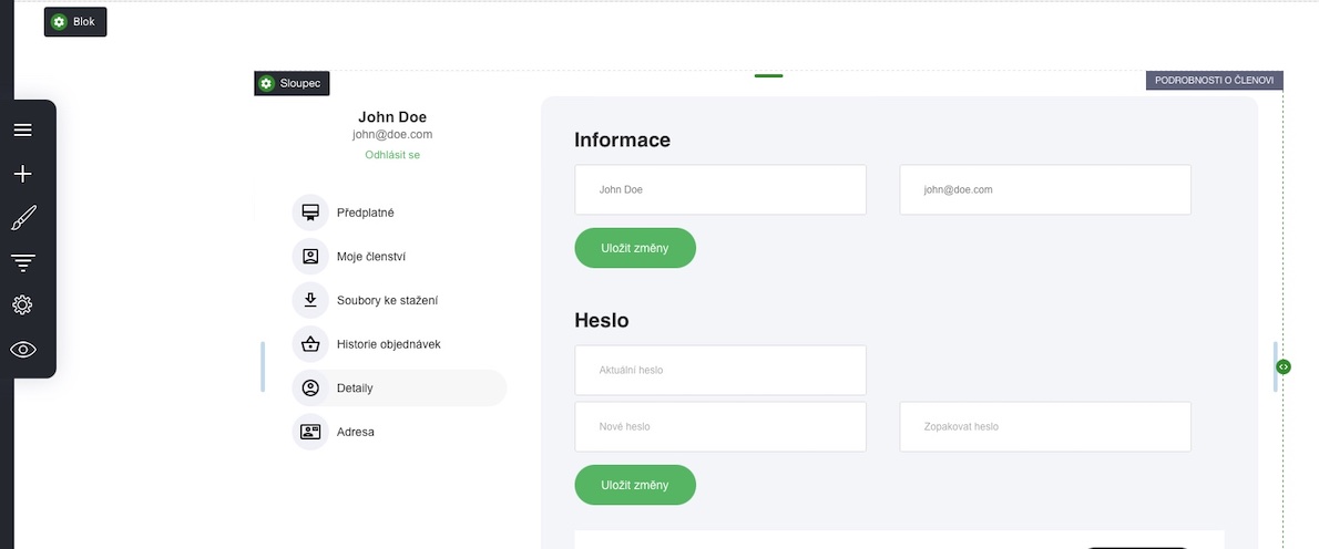 Členům je automaticky přidělena stránka pro správu členství.
