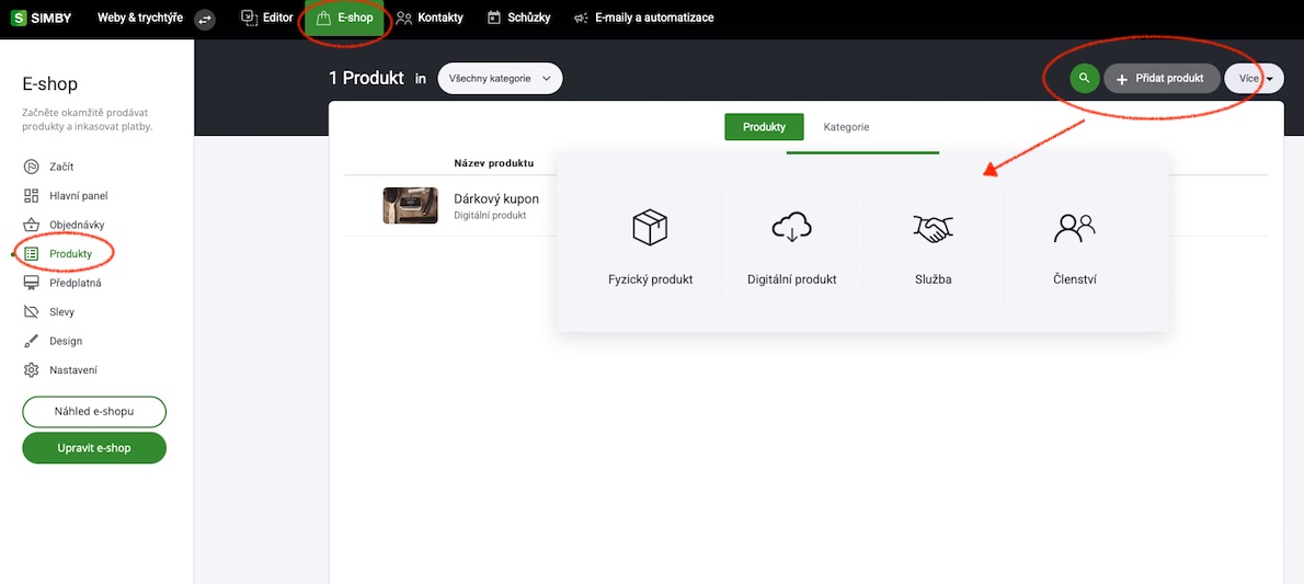 Přejděte na kartu obchodu a vyberte záložku Produkty