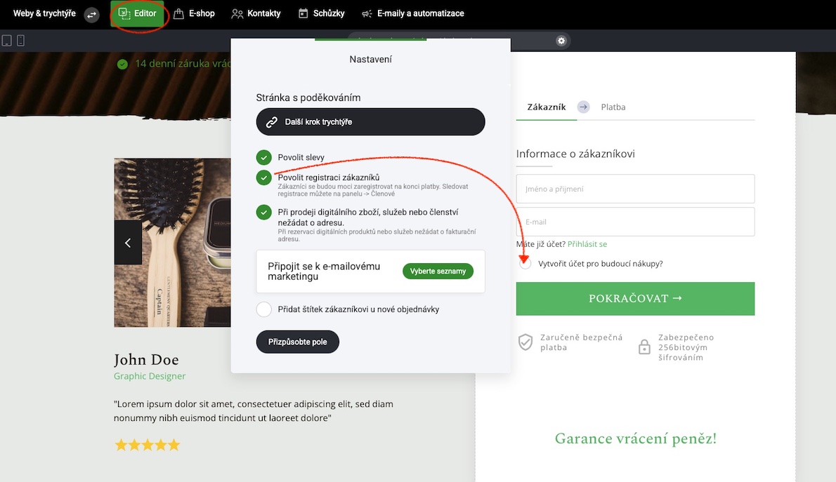 Jakmile si zákazník zakoupí váš členský produkt, můžete ho buď přesměrovat do členské oblasti nebo zobrazit vlastní stránku s poděkováním.