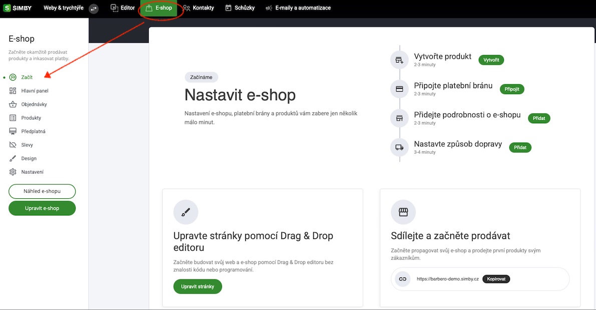 Základní panel e-shopu naleznete pod ikonou Eshopu: