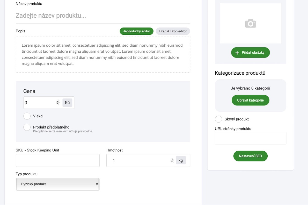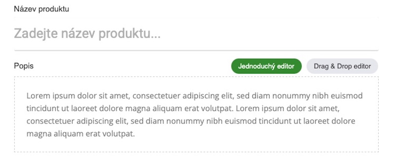 Jednoduchý editor umožňuje zobrazit text na rychlém zobrazení produktu a také na stránce pokladny.