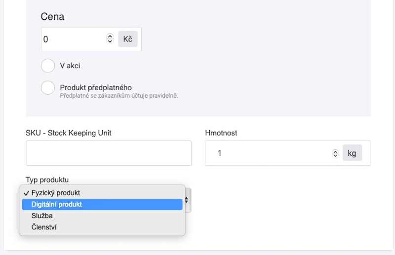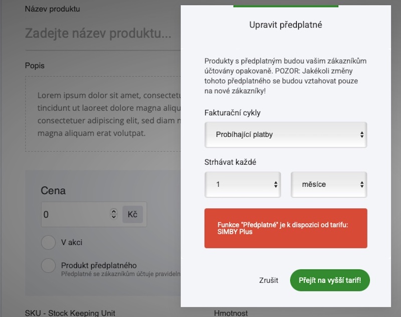 - Zda je produkt předplatné. např: Opakující se platby během přiděleného časového období