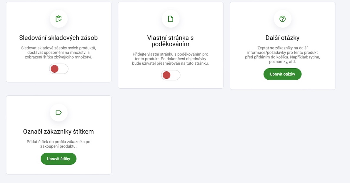 Přidejte množství produktu a povolte vyprodání zásob a nedostatkové zboží prostřednictvím e-shopu.