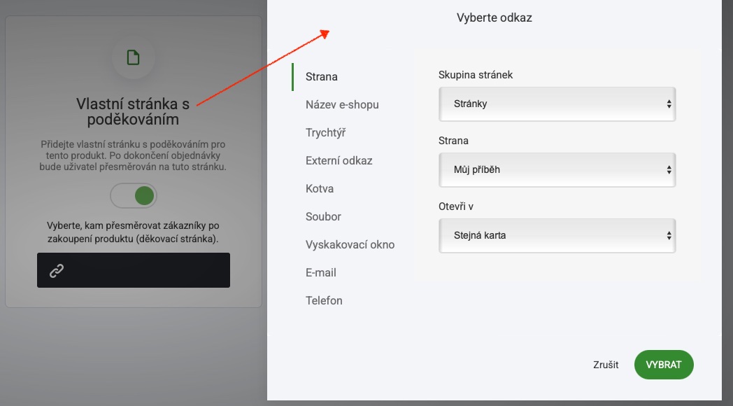 Při použití digitálního produktu budete moci přidat adresu URL svého produktu přímo k položce obchodu, jak je uvedeno níže.