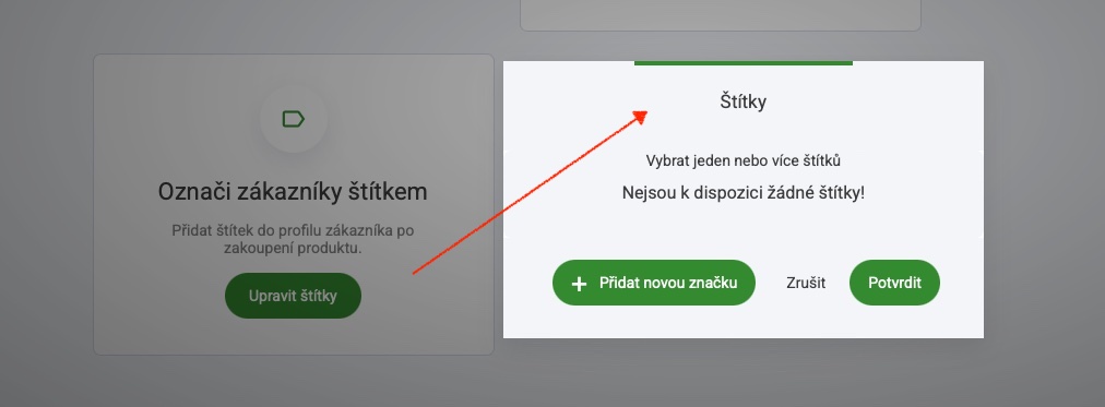Přidejte štítek k produktu a při nákupu se štítek přidá do profilu zákazníka.