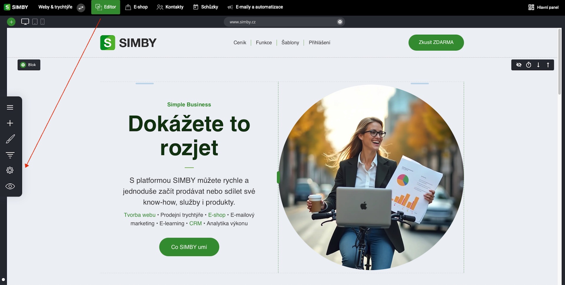 Přejděte do nastavení webu