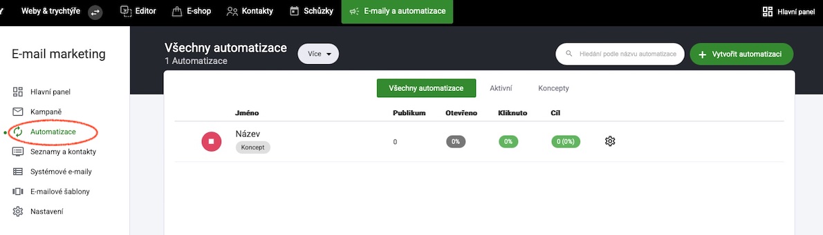 Vyberte kartu Automatizace, jak je znázorněno níže: