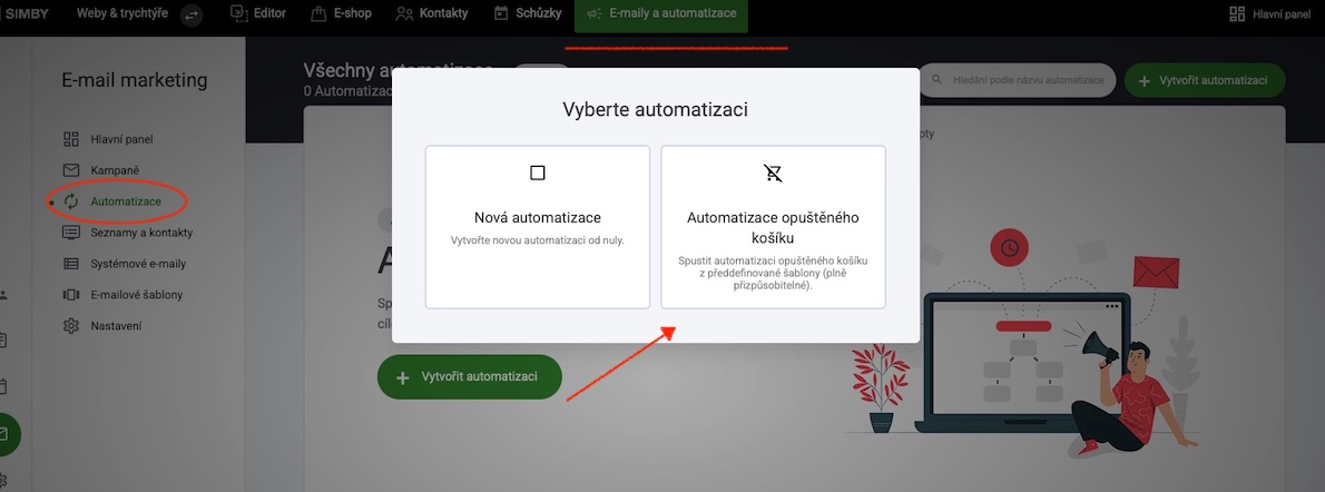 Pro tento příklad vybereme možnost Prázdná automatizace. Více informací o opuštěném košíku si však můžete přečíst níže.