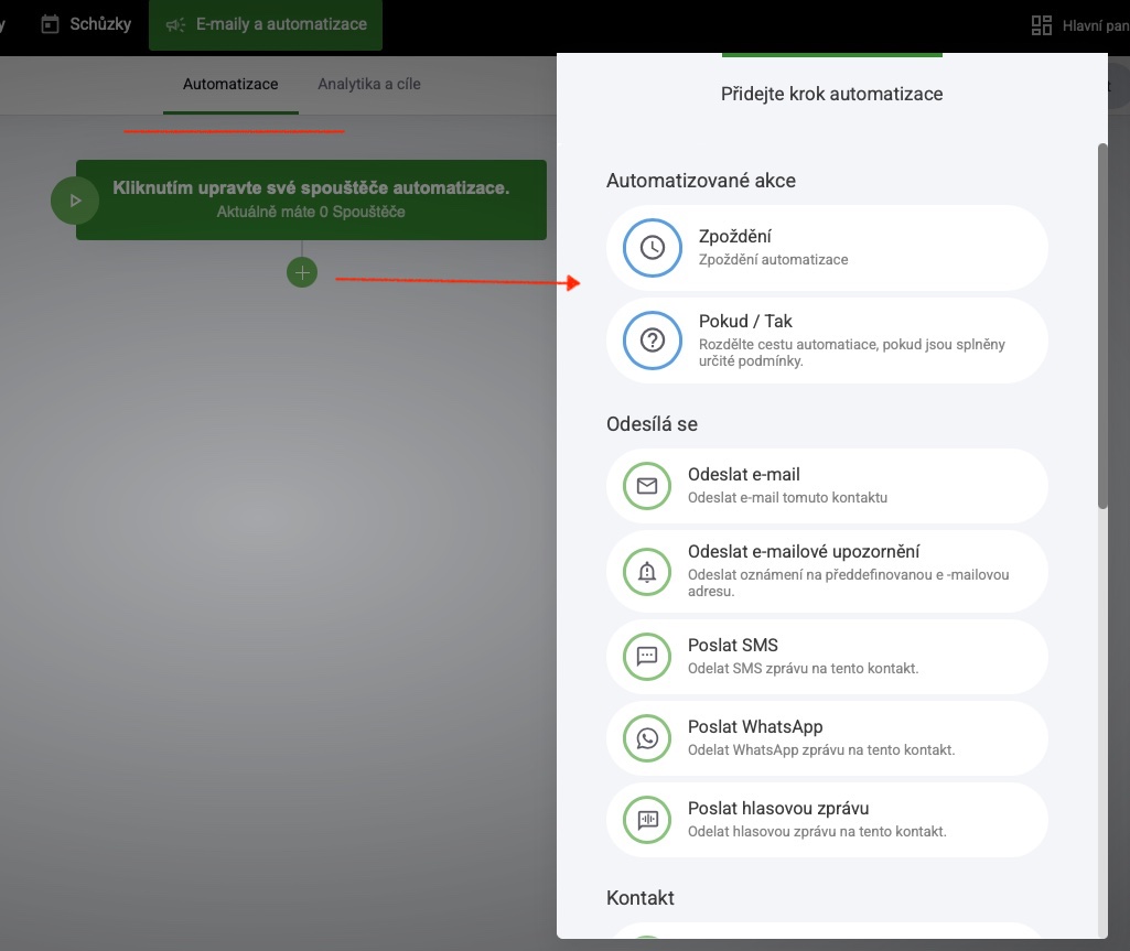 - Zpoždění > pokud někdo navštíví vaše webové stránky, otevře e-mail nebo aktualizuje své informace. Vaše automatizace je připravena ke spuštění 24 hodin denně, 7 dní v týdnu.