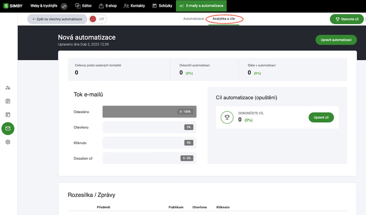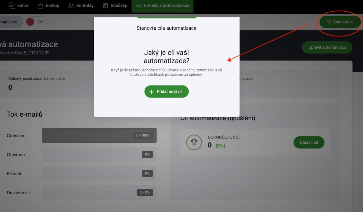 Stanovení cílů vám pomůže posoudit, zda je vaše automatizace úspěšná. Když odběratel dosáhne vašeho konkrétního cíle, považuje se to za výhru a zaznamená se to jako cíl na vašem analytickém panelu.