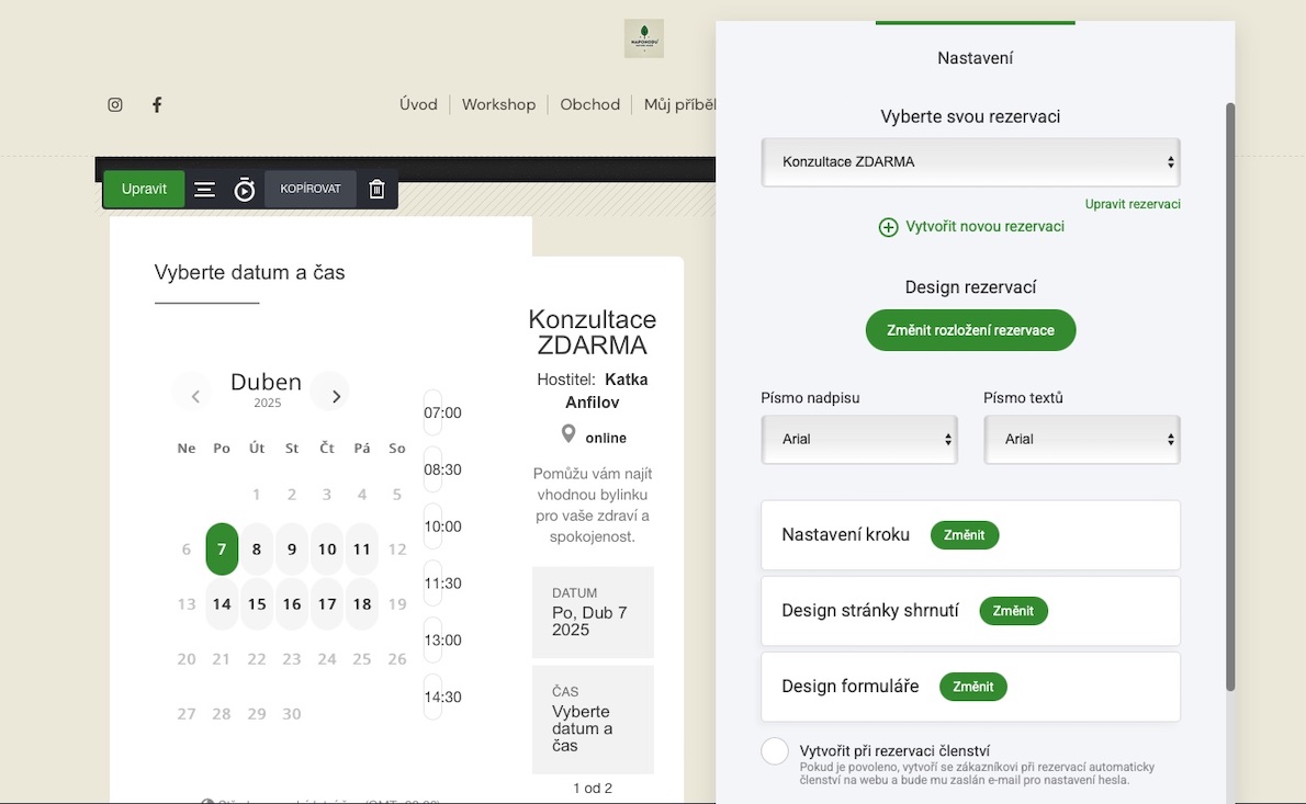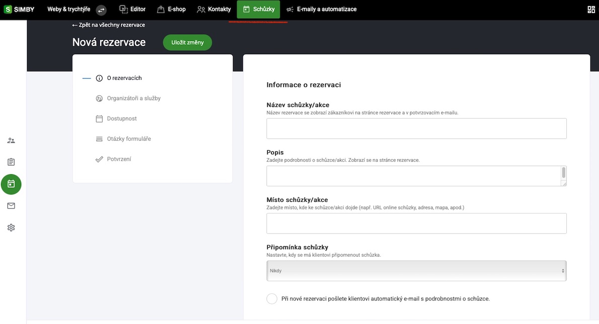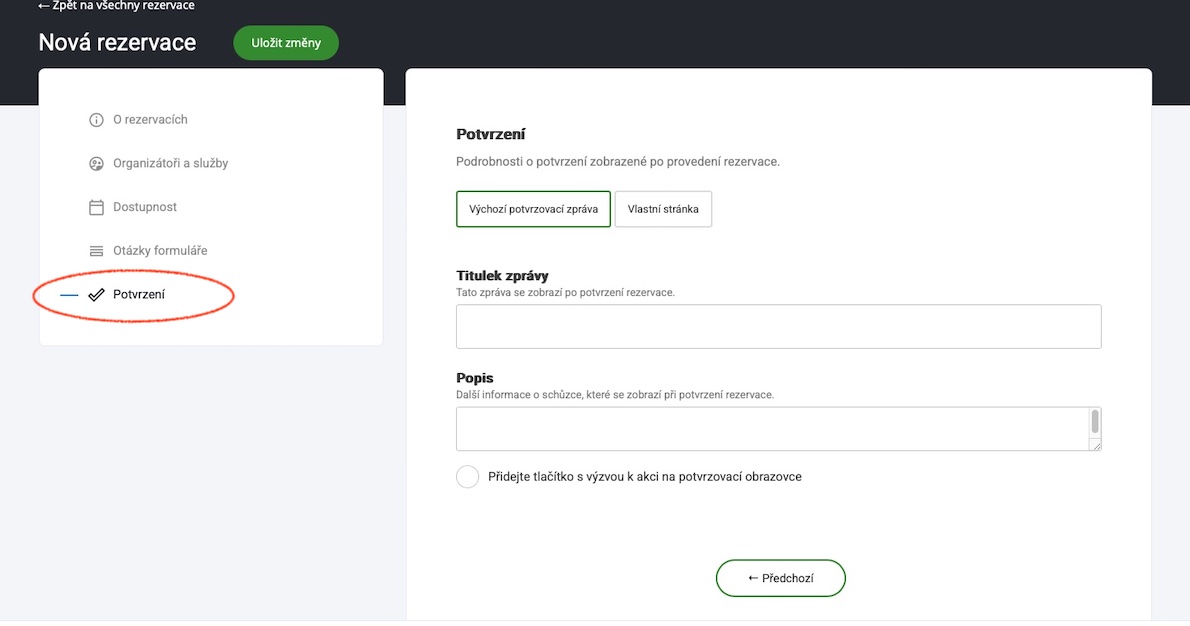 A nakonec nastavení potvrzení, jakmile si u vás uživatel schůzku zarezervuje.