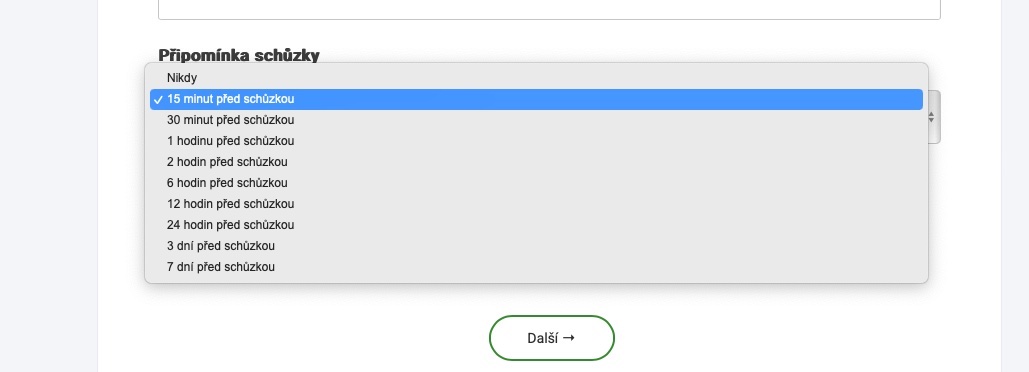 Včasné připomenutí schůzky můžete rozesílat e-mailem. Stačí vybrat časový rámec připomenutí a je připraveno k odeslání.