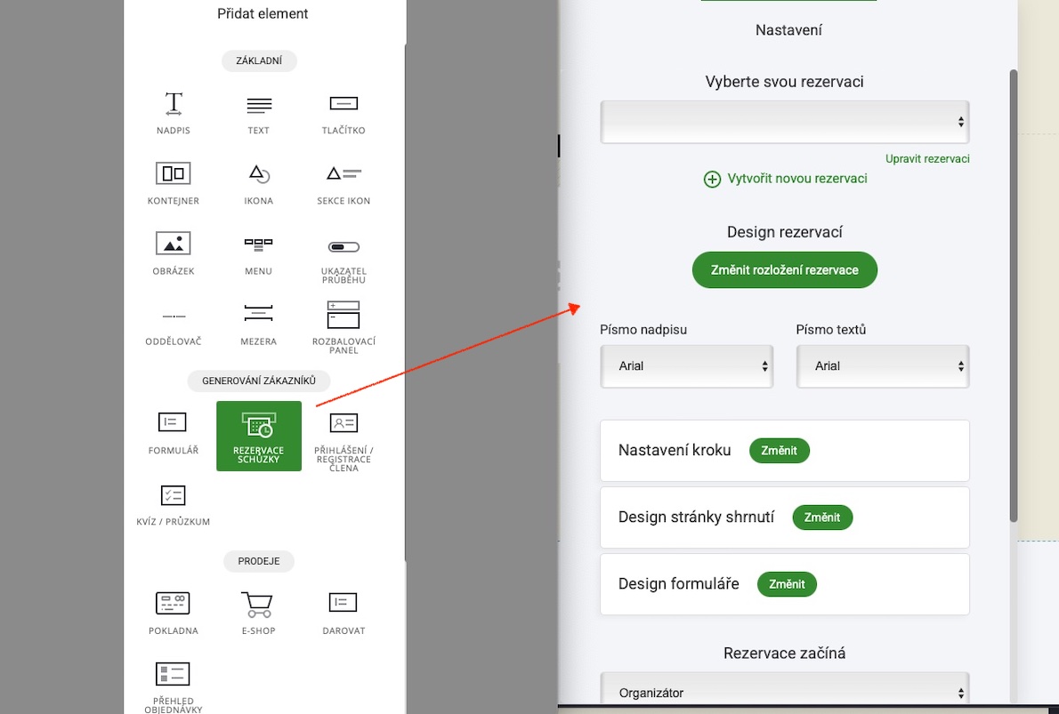 Existuje více způsobů, jak můžete lidi přimět, aby si u vás udělali rezervaci, nejlepším způsobem je přidat element pro rezervaci na libovolnou stránku nebo krok trychtýře, jak je uvedeno níže: