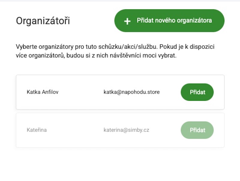 Organizátor je osoba, která bude schůzku/akci řídit.