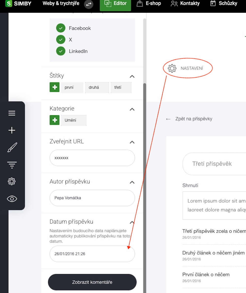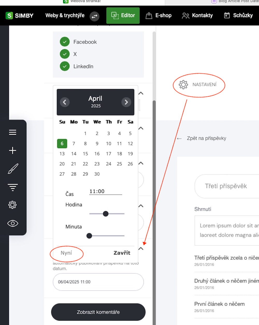 Jak nastavit datum publikace pro váš příspěvek/článek: