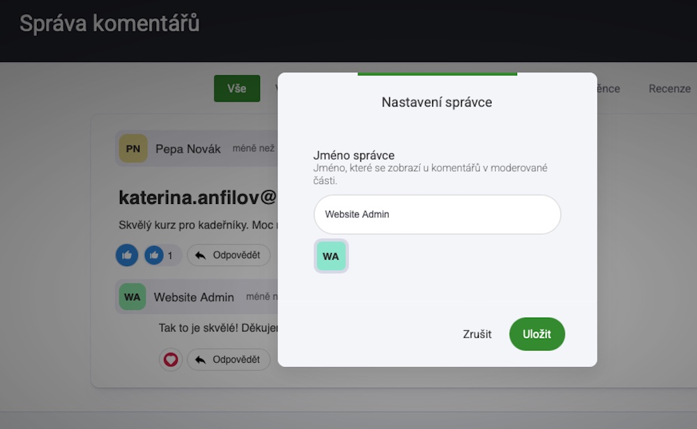 Čekání na schválení: Pokud máte zvoleno nastavení Čeká na schválení, budete moci takový komentář/recenzi přijmout nebo odmítnout. Běžně se používá v rámci komentářů na blogu.